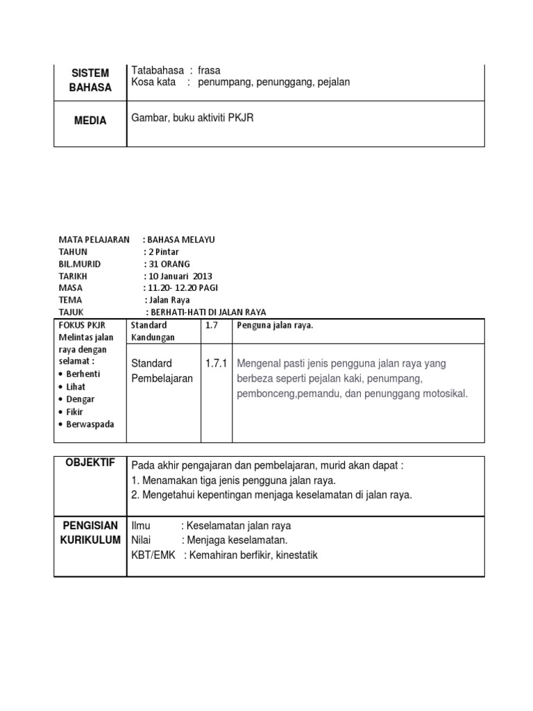 Rancangan Pengajaran Harian Pkjr Pendidikan Keselamatan Jalan Raya