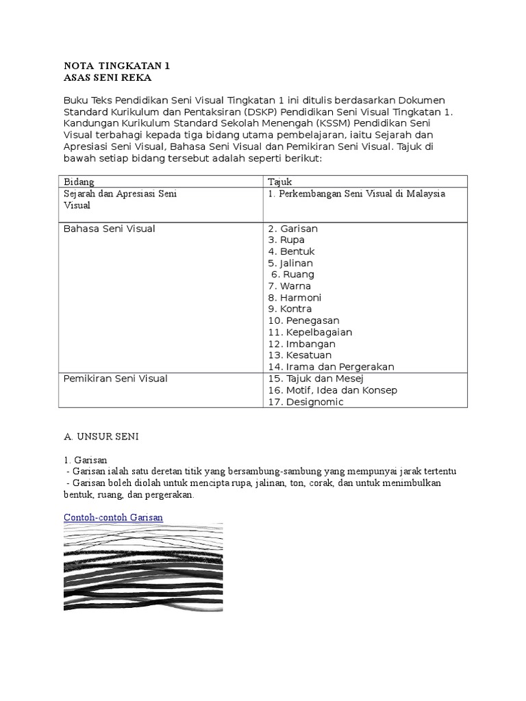 Pendidikan Seni Visual Tingkatan 1 Garisan
