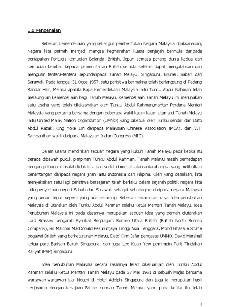 Pembentukan Malaysia Dan Cabaran Sebuah Kerajaan Merdeka 1