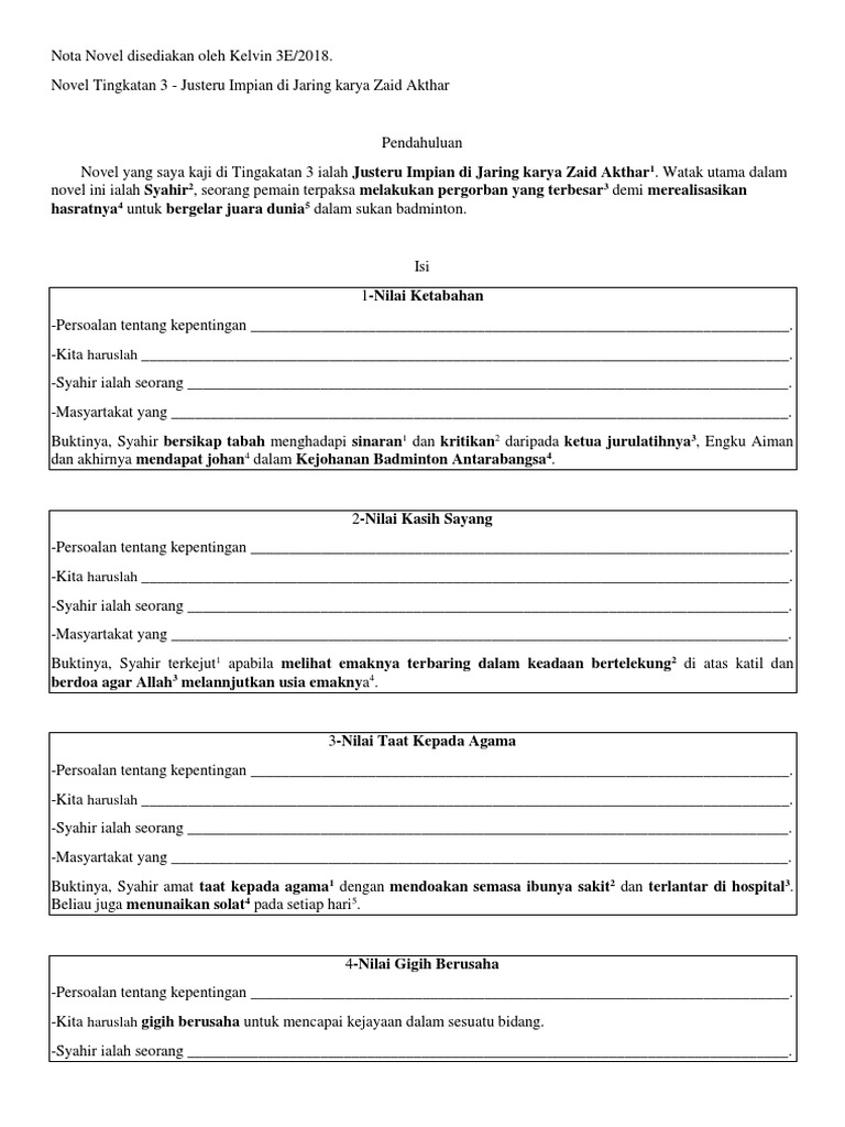 Novel Tingkatan 3 Disediakan Oleh Kelvin