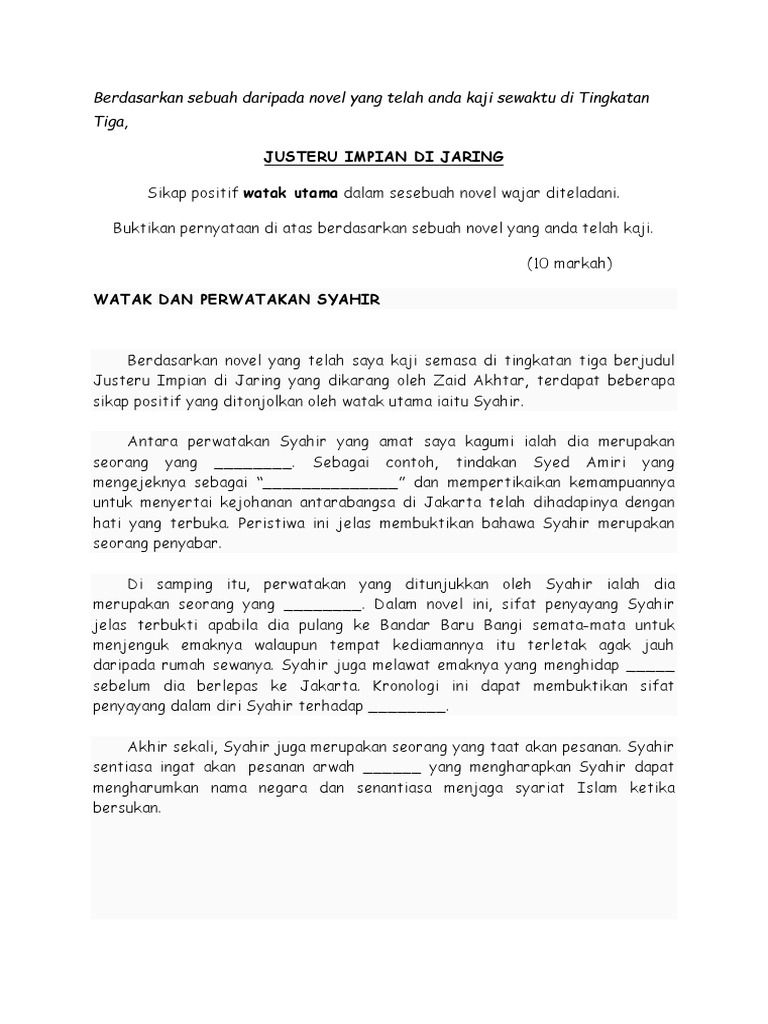 Contoh Soalan Novel Justeru Impian Di Jaring Kuora B