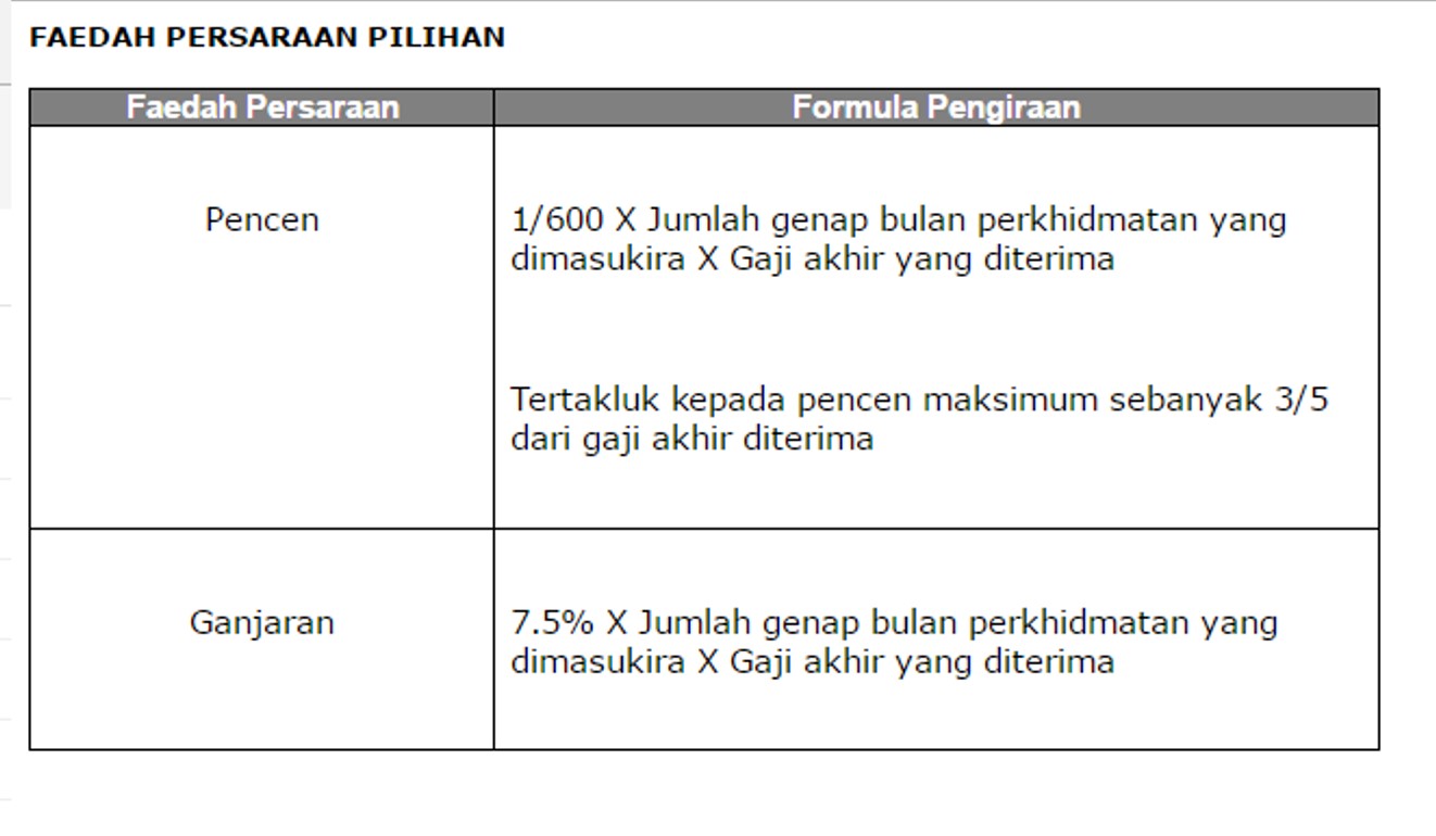 Pengiraan Ganjaran Pencen Pilihan