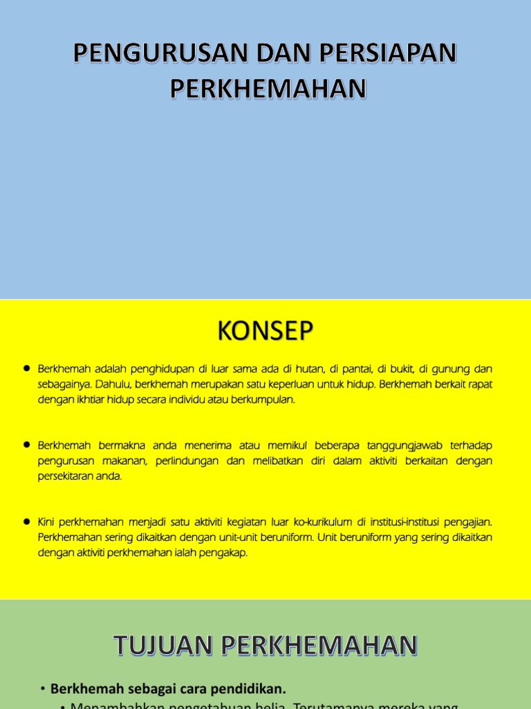 Unit beruniform yang sering dikaitkan dengan khemah dan perkhemahan ialah pengakap. Pada tahun 1970 pejabat ini diketuai oleh seorang pegawai kerahan tenaga awam dan pejabat utama terletak di perkhemahan berakas. Academia edu is a platform for academics to share research papers. Pp pandu puteri 12 pengurusan dan persiapan perkhemahan.
