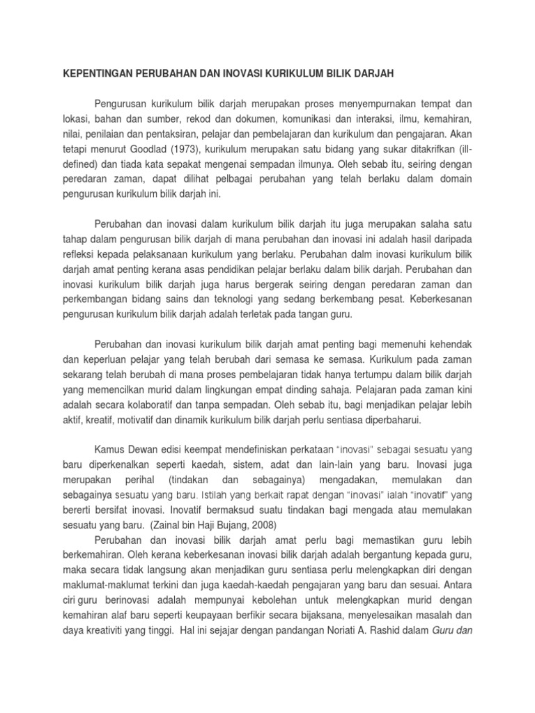 Kepentingan Perubahan Dan Inovasi Kurikulum Bilik Darjah