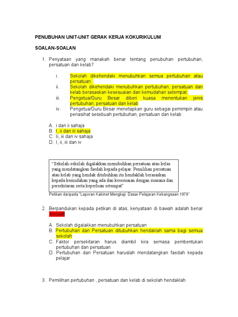 Penubuhan Unit Unit Gerak Kerja Kokurikulum Soalan Soalan