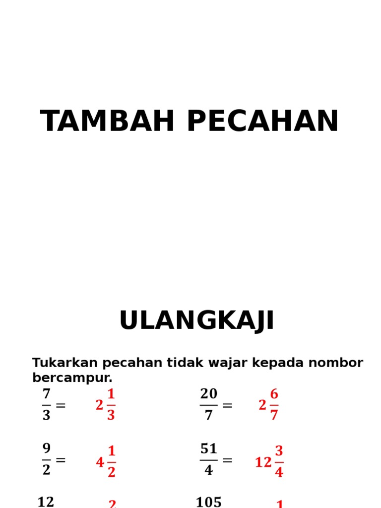 Tukarkan Pecahan Tak Wajar Kepada Nombor Bercampur Docx