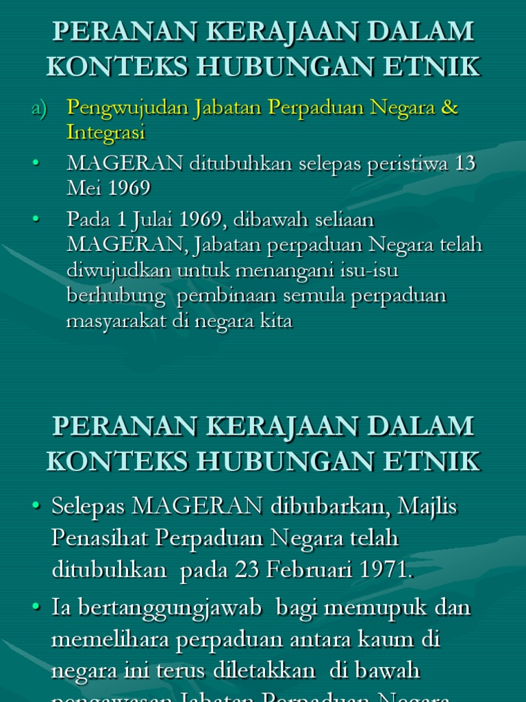 Peranan Kerajaan Dalam Konteks Hubungan Etnik Pengwujudan Jabatan Perpaduan Negara Integrasi
