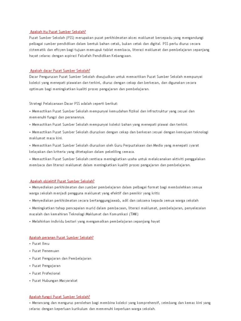 Peranan Pusat Sumber Sekolah Pss Salam