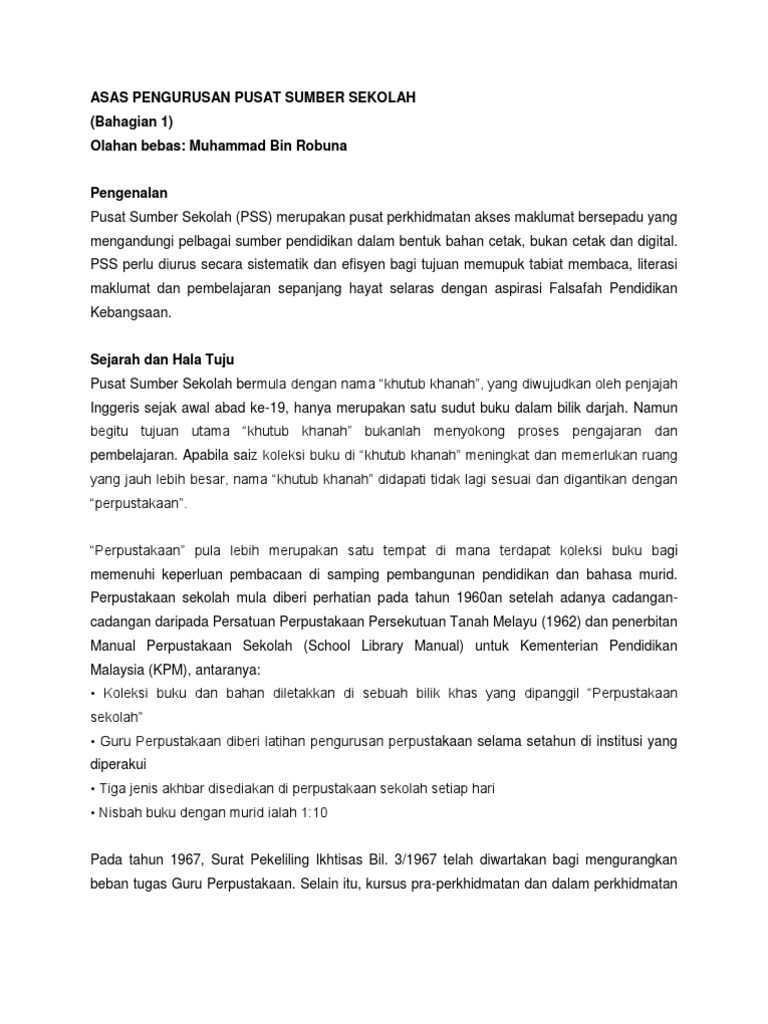 Garis Panduan Perpustakaan Sekolah Pusat Sumber Sekolah Pss Ifla