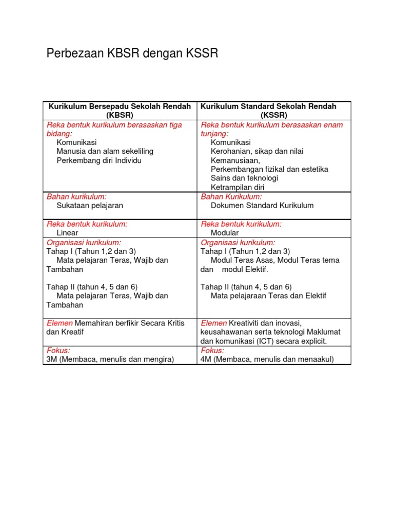 Doc Perbezaan Kbsr Dengan Kssr Jupirin Anakung Academia Edu