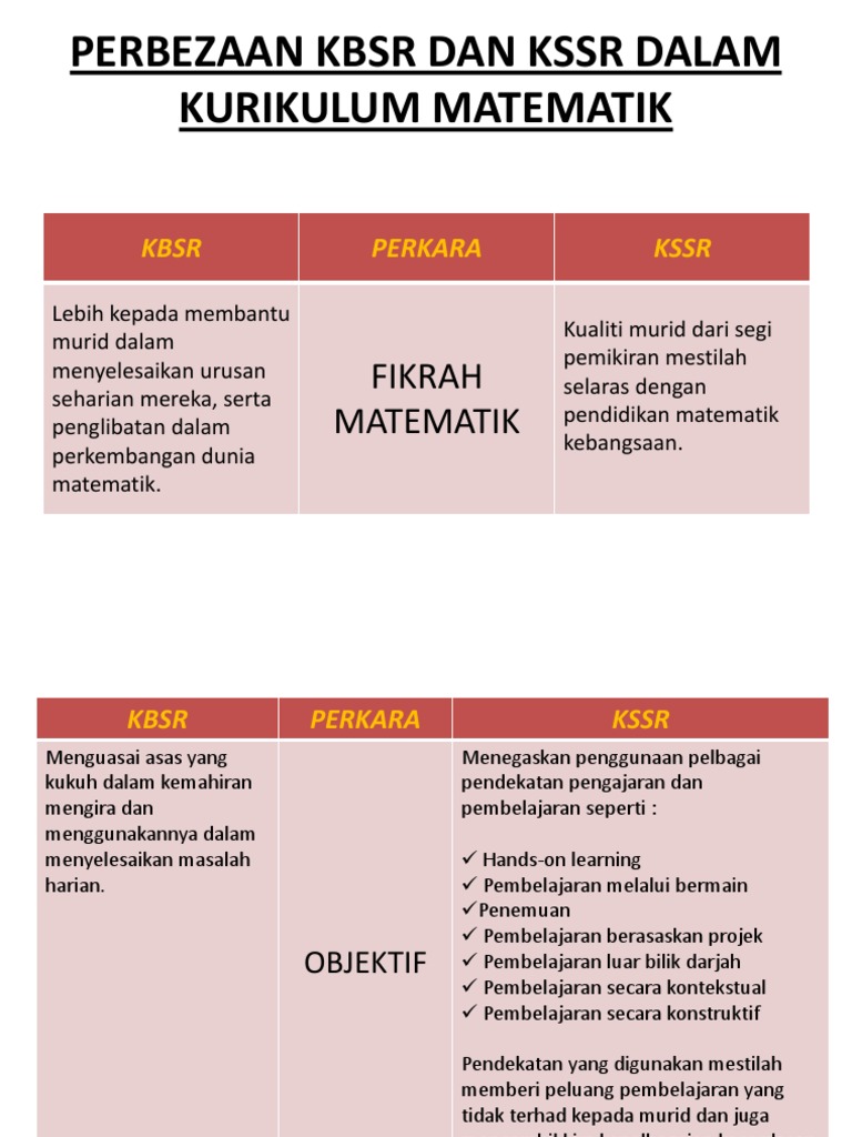 Perbezaan Kbsr Dan Kssr Dalam Kurikulum Matematik