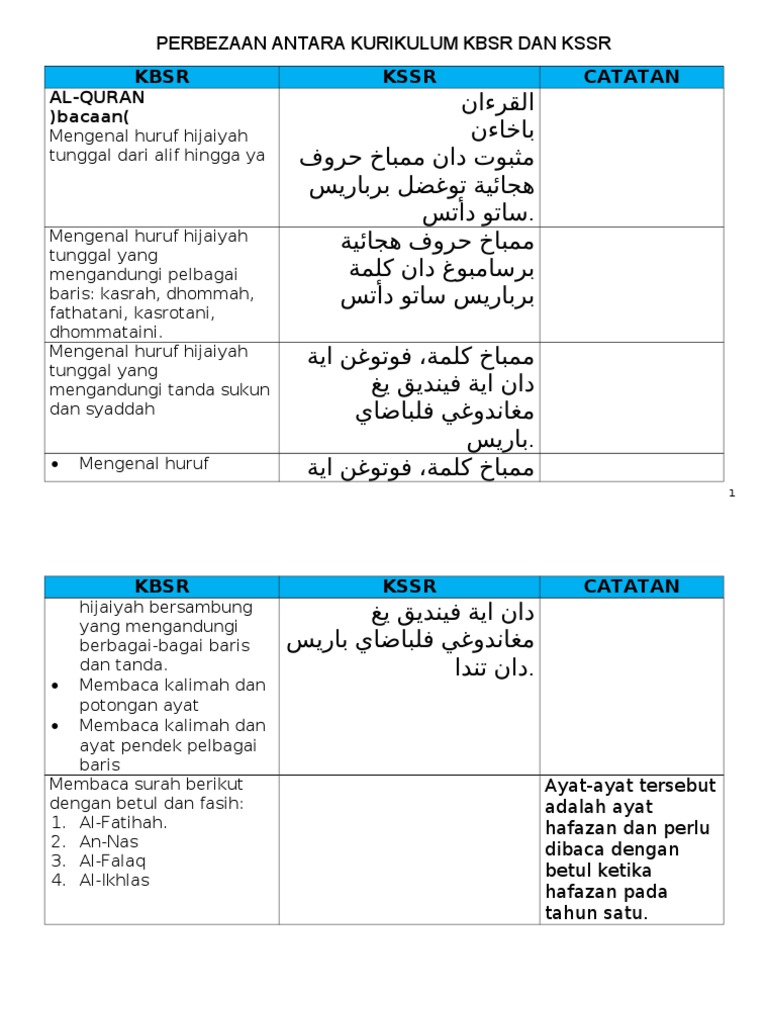 Doc Perbezaan Kbsr Dengan Kssr Jupirin Anakung Academia Edu