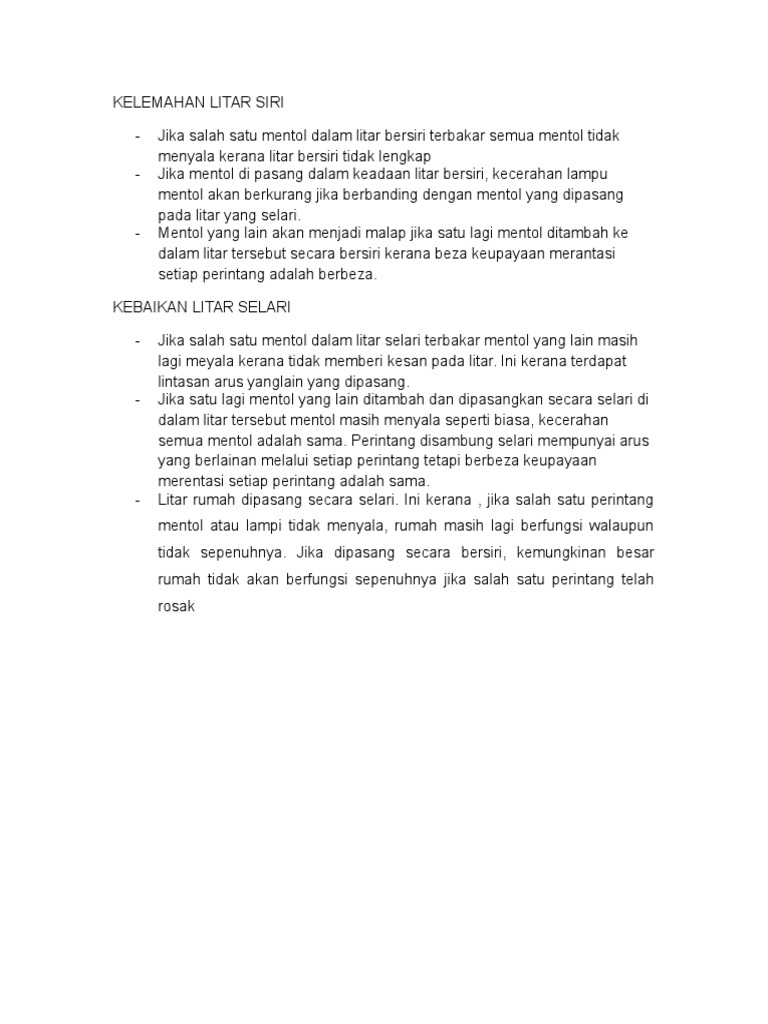 Kelemahan Litar Siri Dan Kelebihan Litar Selari Docx