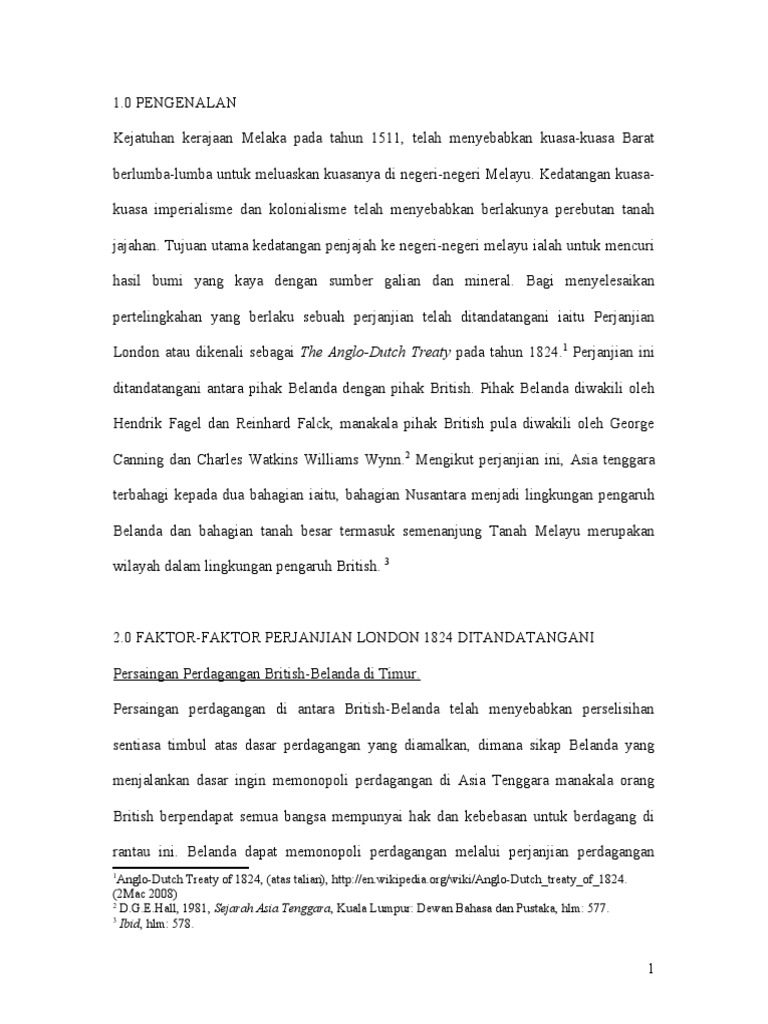 Perjanjian London 1824 Dan Kesannya Terhadap Alam Melayu By Aishah Shyakirah