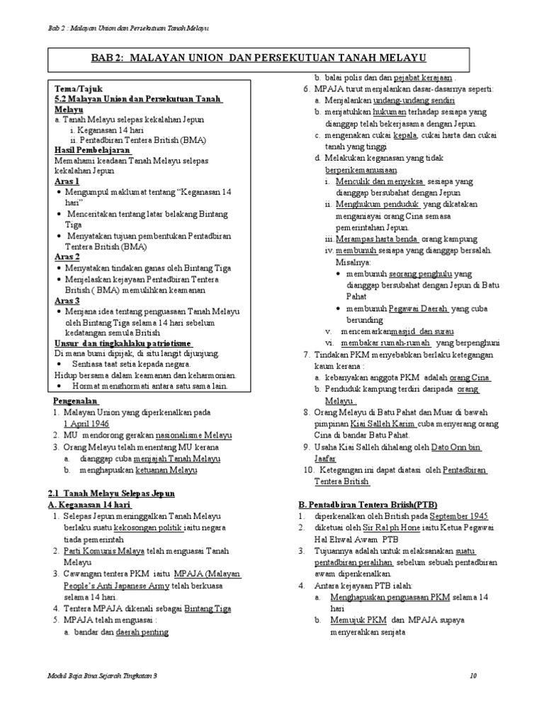 Tema Tajuk 5 2 Malayan Union Dan Persekutuan Tanah Melayu