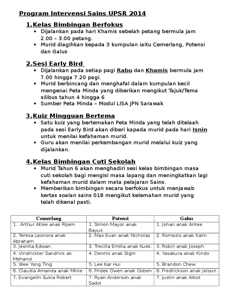 Templete Program Intervensi Sains Tahun 6 Murid Cemerlang