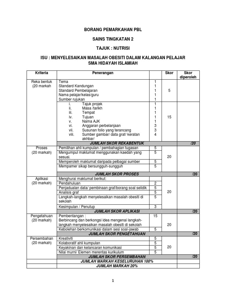 Borang Pemarkahan Pbl Nutrisi Docx