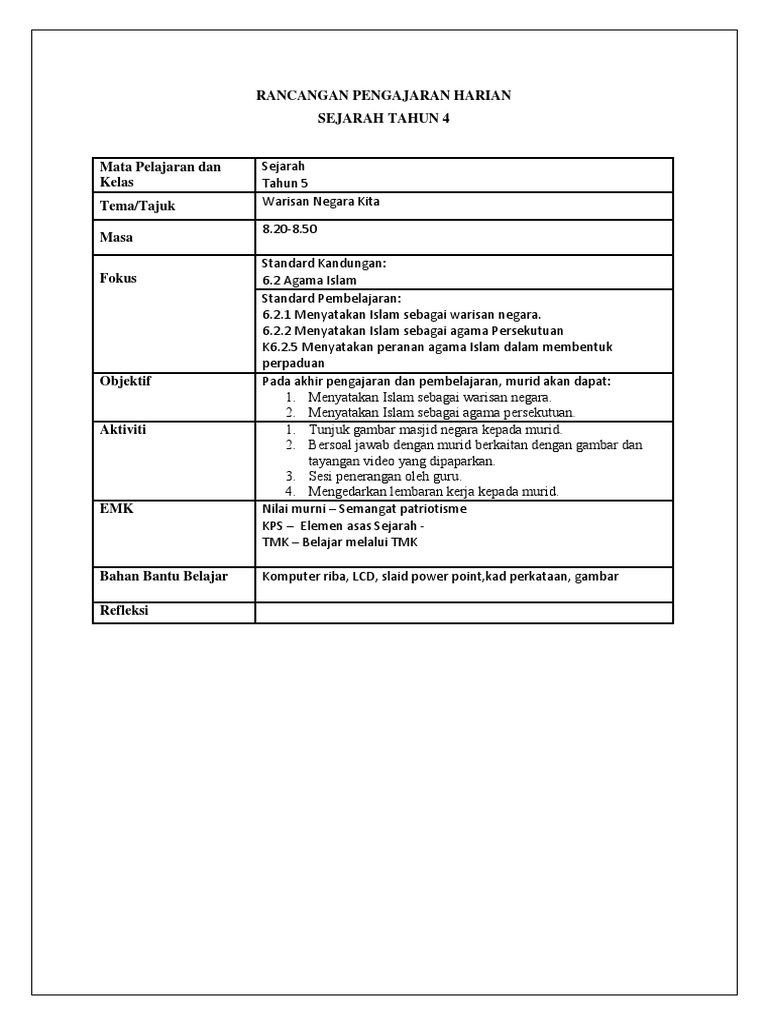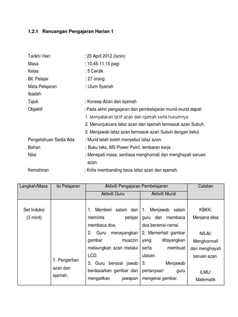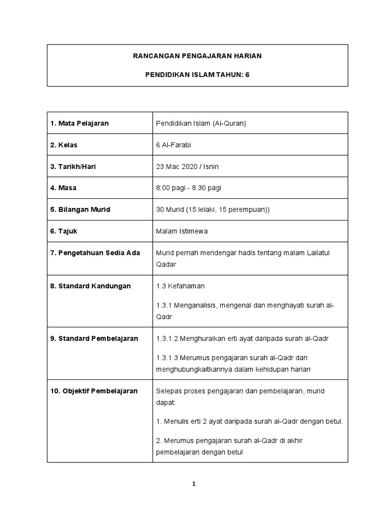Pdf Rancangan Pengajaran Harian Pendidikan Agama Islam Lin Lasim Academia Edu