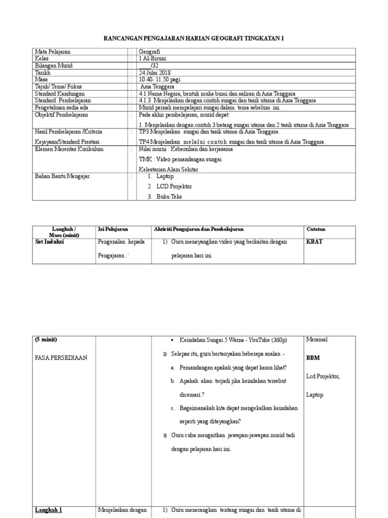 Rancangan Pengajaran Harian Geografi Tingkatan 1 Praktikum