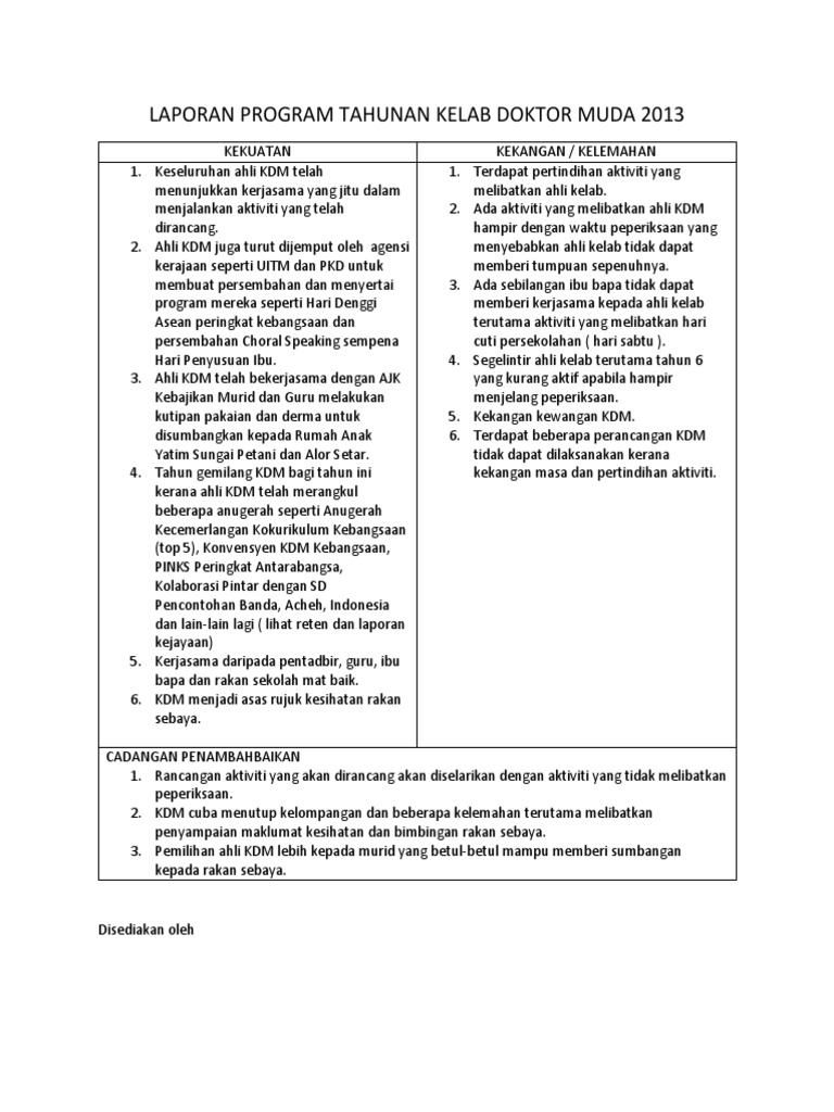 Laporan 1 Kelab Doktor Muda