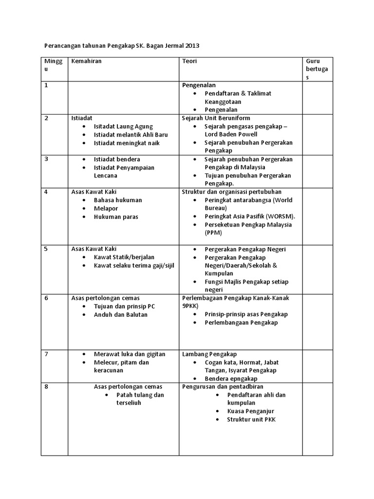 Rancangan tahunan aktiviti pengakap klik di sini untuk muat turun rancangan tahunan aktiviti pengakap. Perlantikan jawatankuasa murid perancangan program tahunan 2 17 1 2018 tahun 4 tahun 4 menunjuk cara persetiaan cik siti aishah pengakap binti mutazah undang undang pengakap. Klik untuk ke portal sekolah. Bagi membantu para guru sertakan rancangan pengajaran tahunan untuk semua mata pelajaran bagi sekolah rendah.