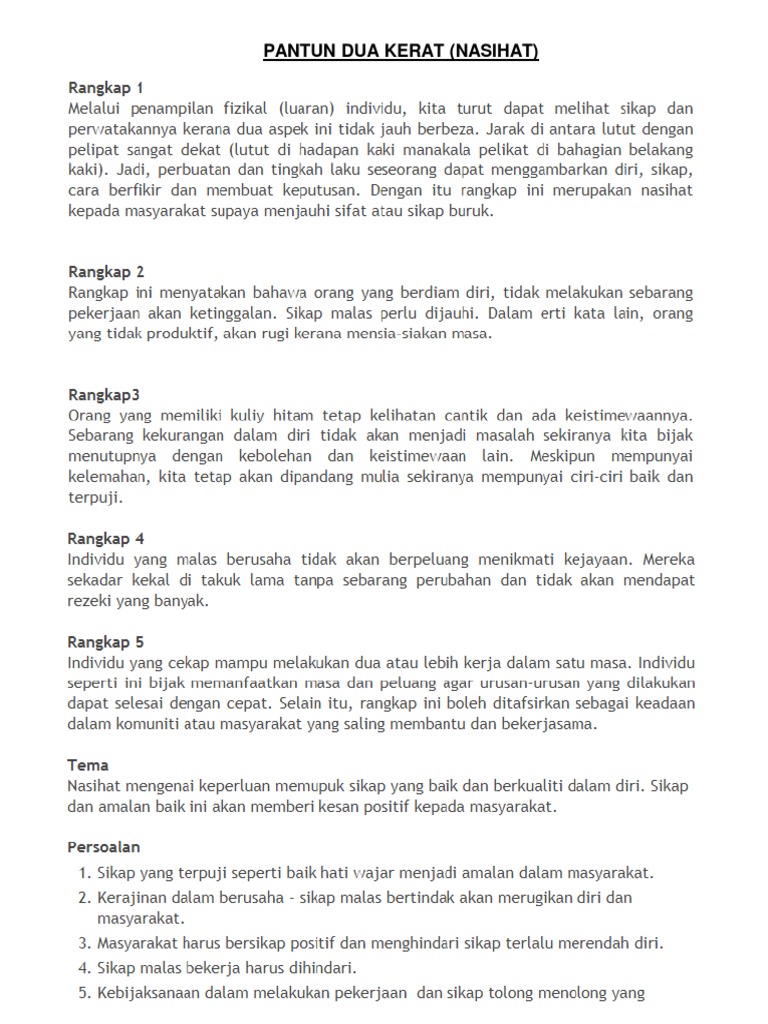 Doc Pantun 2 Kerat Nasihat Nurull Sya Academia Edu