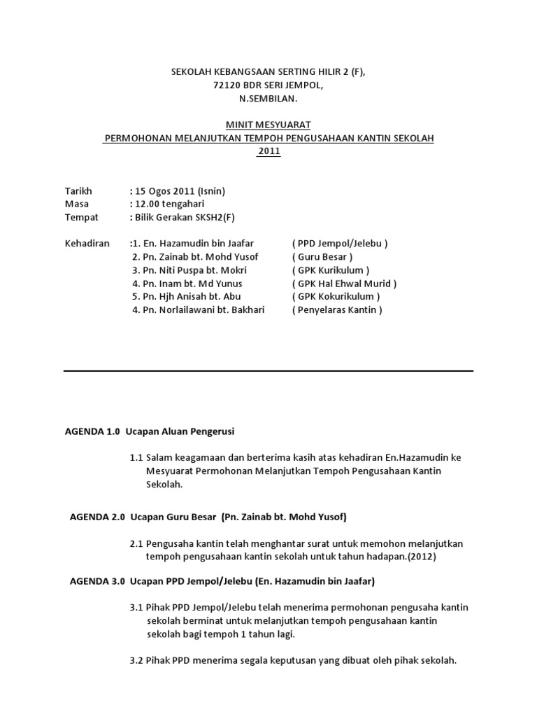 Surat Panggilan Mesyuarat Minit Mesyuarat