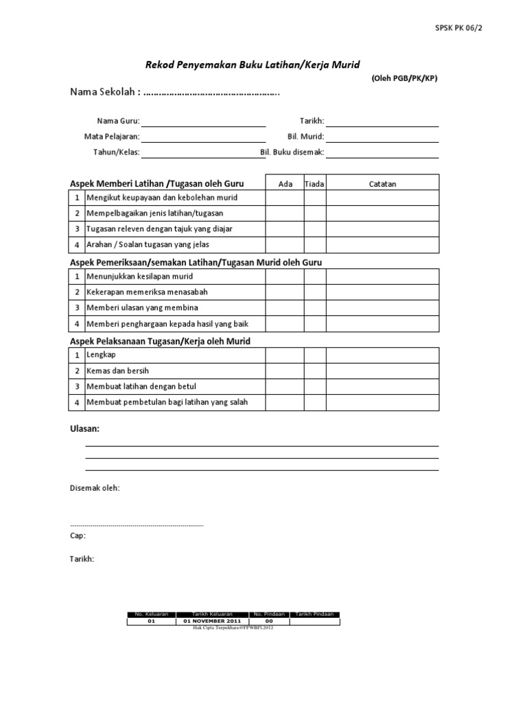 Borang Pk 06 1 Rekod Semakan Kerja Murid Edit
