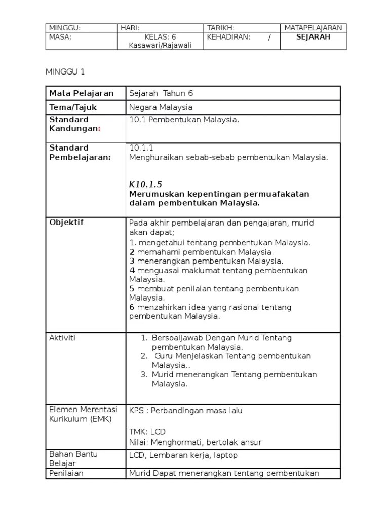 Rph Sejarah Tahun 6 Sumber Pendidikan A Rph Sejarah Thn 6