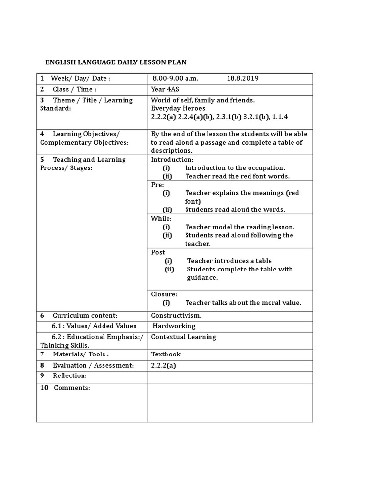 Contoh Rph Bahasa Inggeris Lesson Plan Human Communication