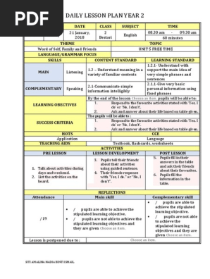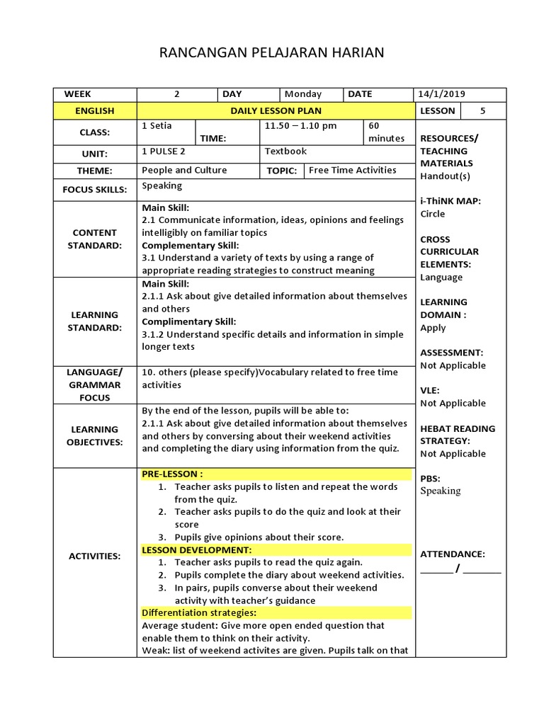 Kssm English Lesson Plan For Form 2 Sample Lesson Plan Linguistics English Lessons English Lesson Plans How To Plan