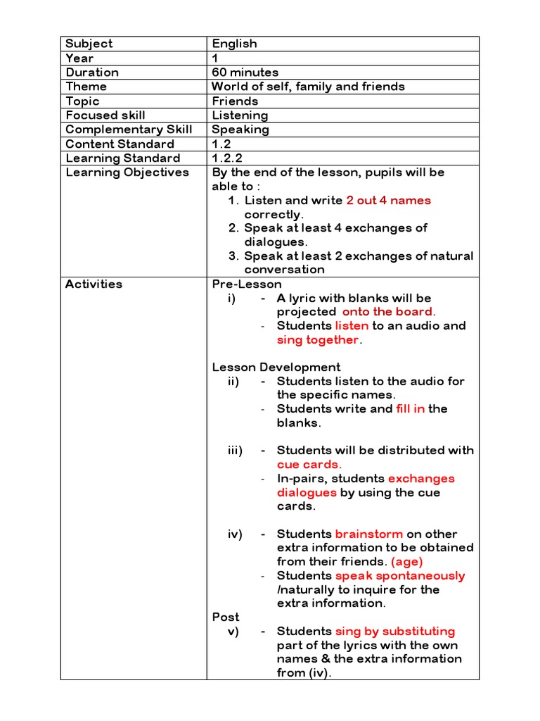 English Lesson Plan Year 2 Cefr Lesson Plan Pedagogy