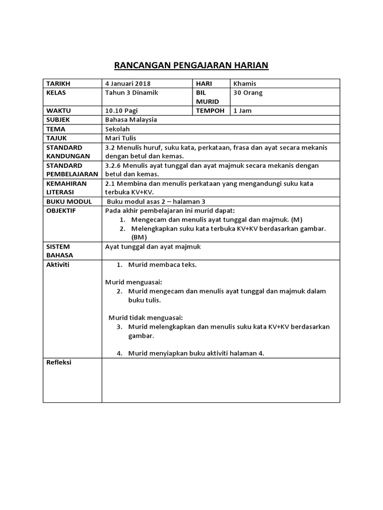 Ayat tunggal ayat majmuk thn3 1. Rancangan pengajaran ini dibina untuk membantu murid murid linus tahun 3 yang telah memasuki arus perdana. Kata ganda berirama berentak. Rancangan pengajaran harian b melayu tahun 3 rancangan pengajaran harian.