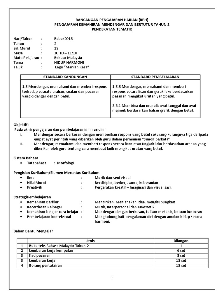 Rph Kemahiran Mendengar Dan Bertutur Tahun 2