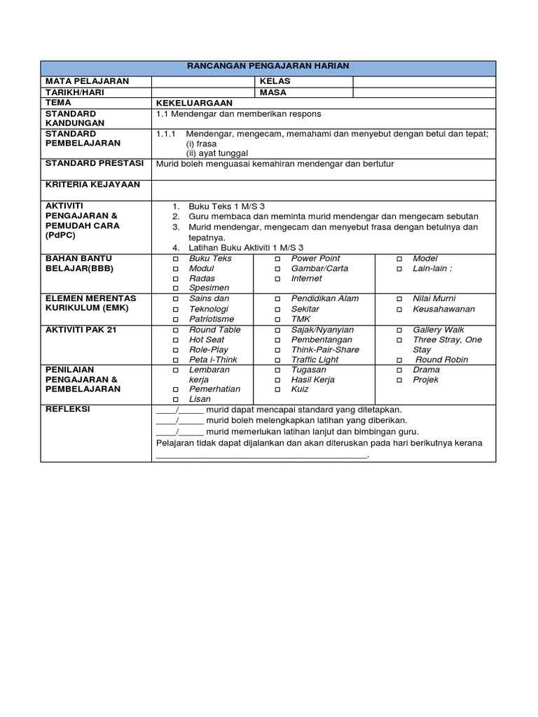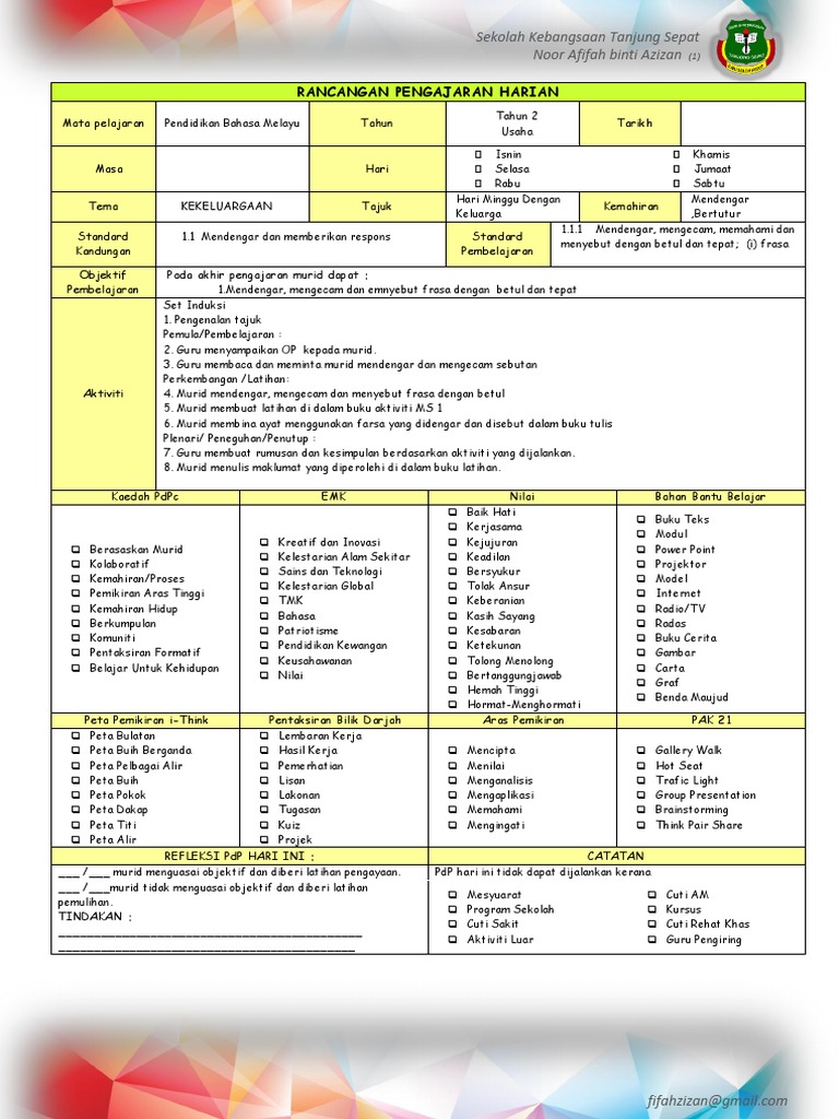 Rancangan Pengajaran Harian Tahun 2 Bm 2018