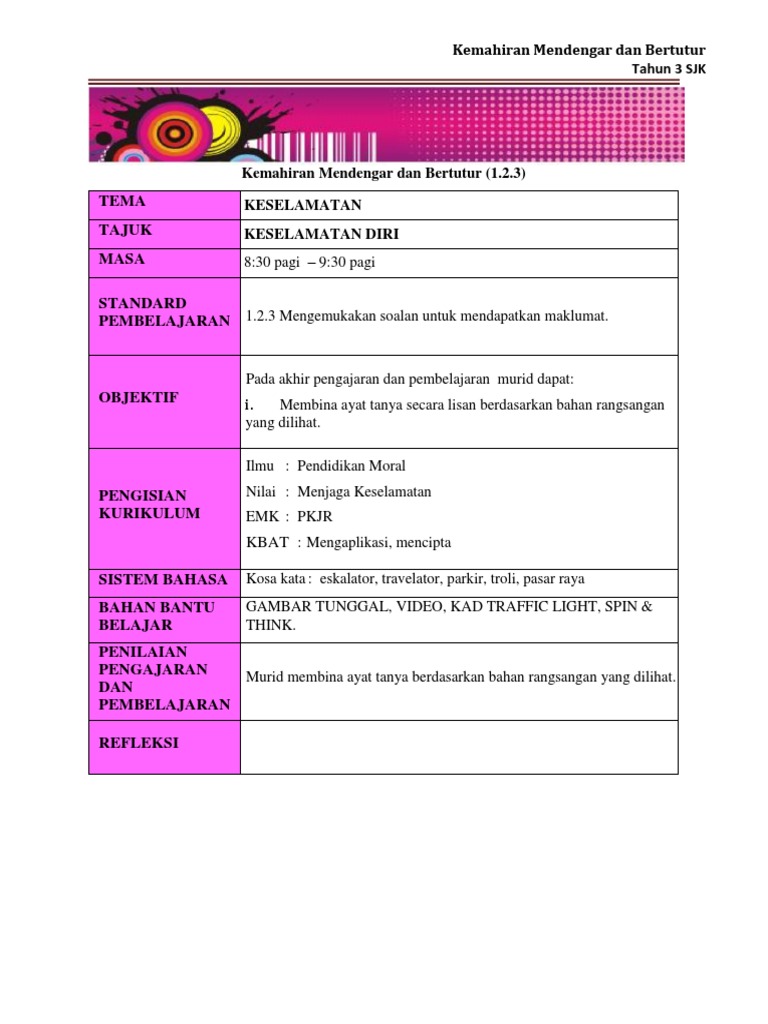 Rancangan Pengajaran Harian Kssr Kemahiran Mendengar Dan Bertutur