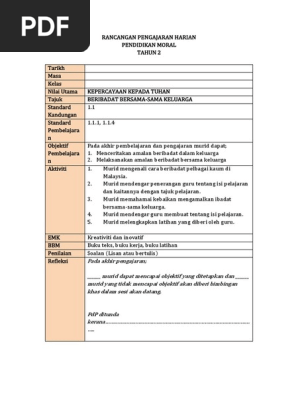 Doc Rancangan Pengajaran Harian Pendidikan Moral Tahun 4 Mem Mm Academia Edu