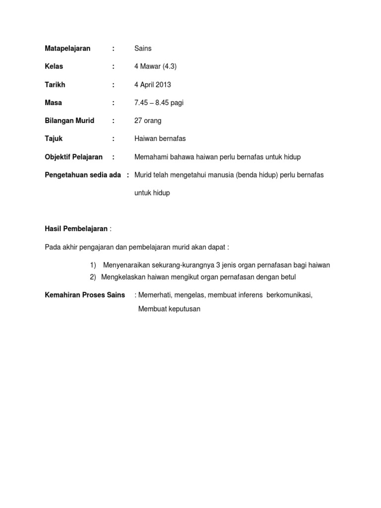 Rph Sains Tahun 4 Haiwan Bernafas