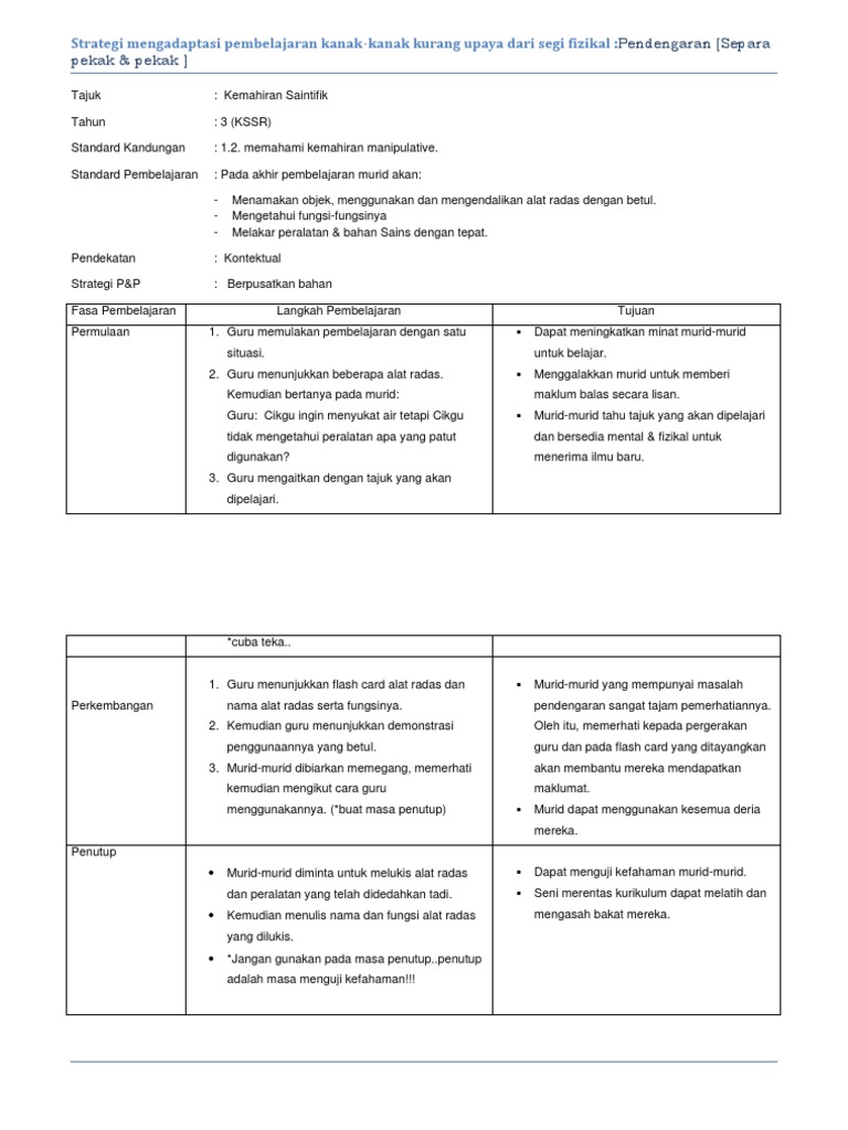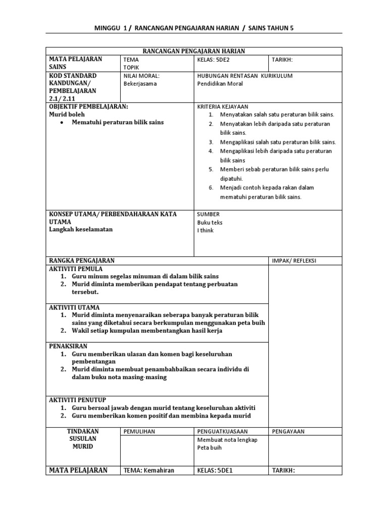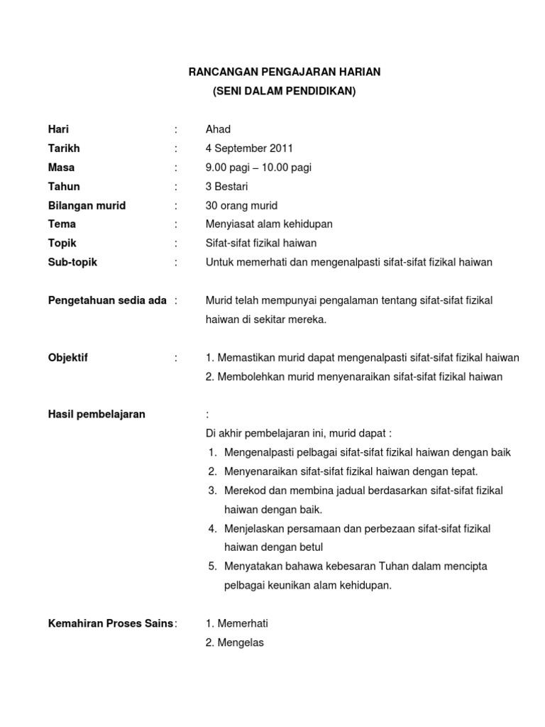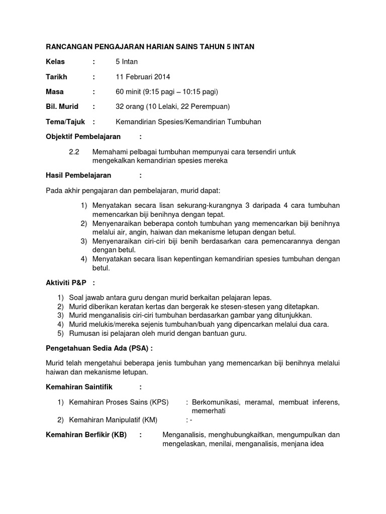 Rancangan Pengajaran Harian Sains Tekn