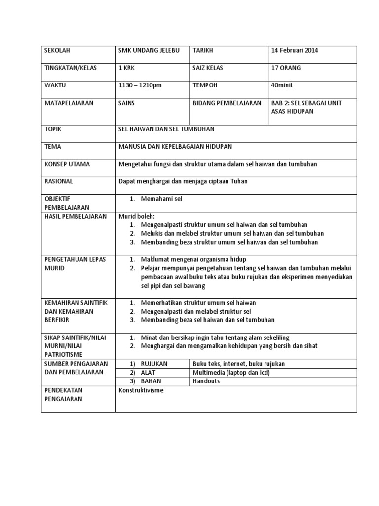 Contoh Rph Sains Tingkatan 2 Kssm