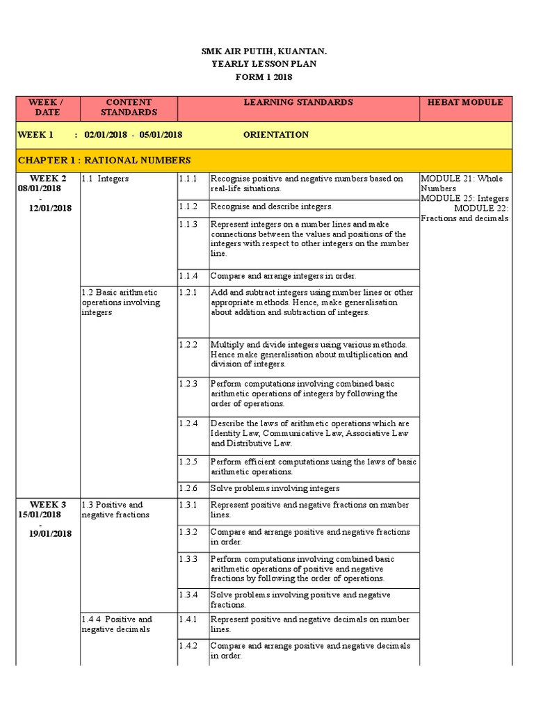 Rancangan Pengajaran Tahunan Rpt 2018 Tingkatan 1 Semua Subjek Art Supplies Guru
