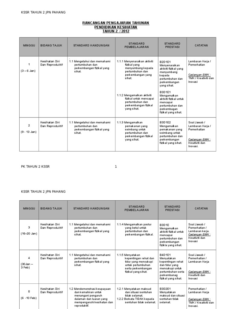 77545621 Rancangan Tahunan Pendidikan Kesihatan Tahun 2 Kssr 2012