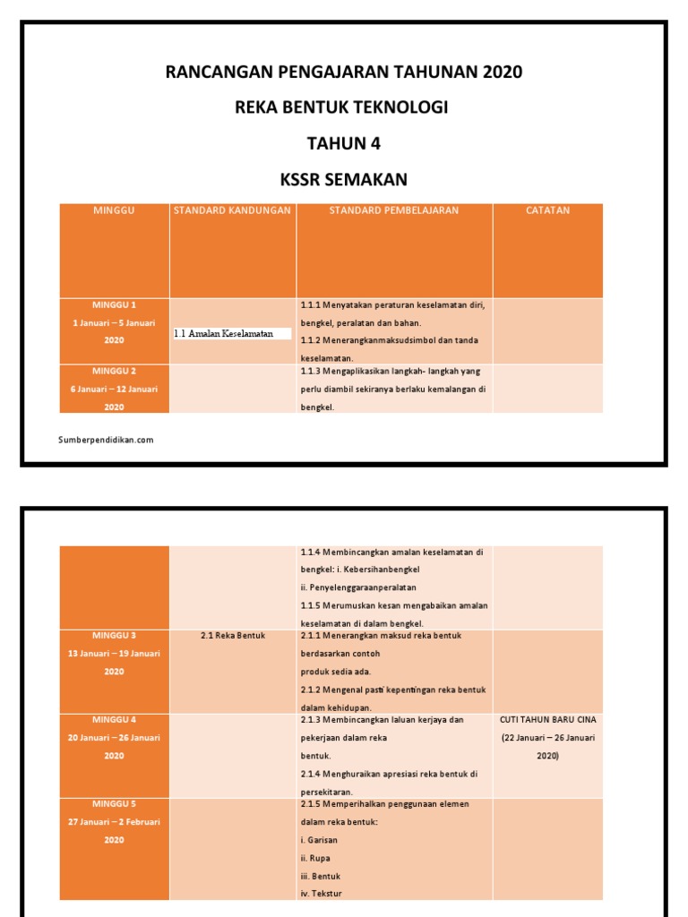 Rancangan Pengajaran Tahunan Rekabentuk Teknologi Tahun 5 Rpt Rbt Tahun 5 2020 Cikgu Suffi Cs