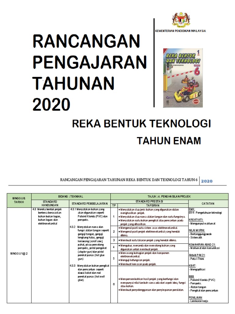 Rancangan Pengajaran Tahunan Rekabentuk Teknologi Tahun 6 Rpt Rbt Tahun 6 2020 Cikgu Suffi Cs
