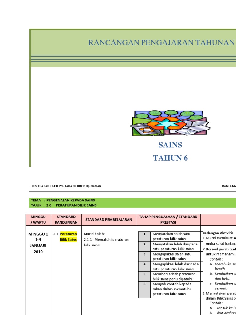 Rancangan Pengajaran Tahunan 2019 Sains Tahun 6
