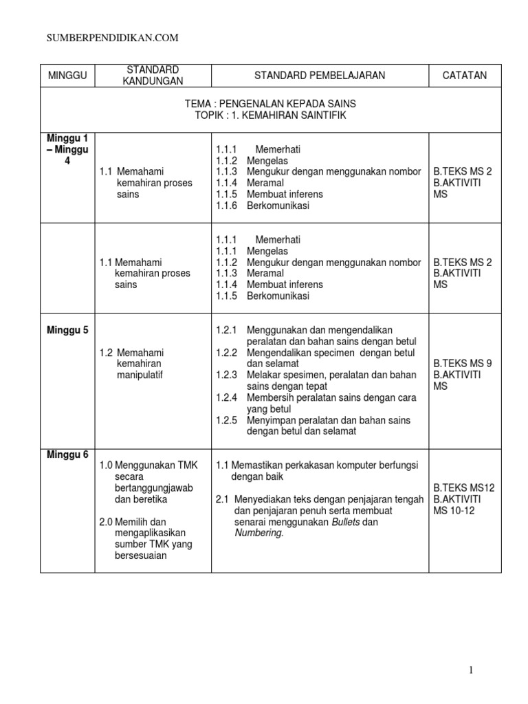 Rpt Penjajaran Sains Tahun 5 2020 Pages 1 12 Text Version Anyflip