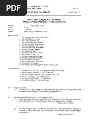 Minit Mesyuarat Anugerah Cemerlang Kali 1