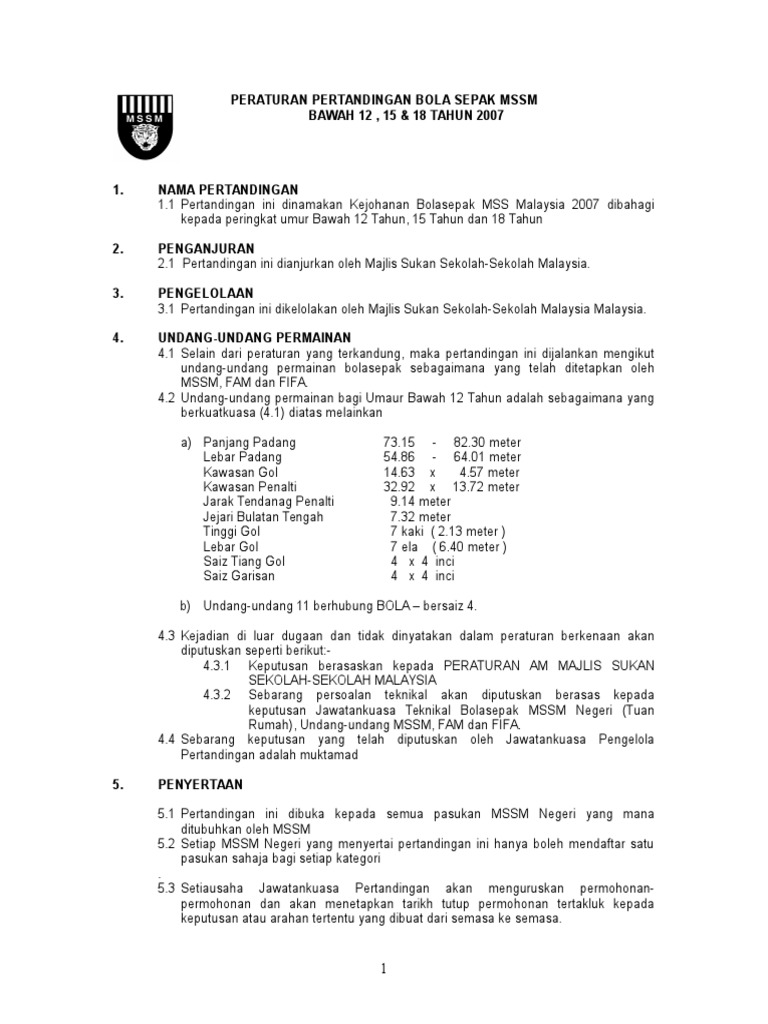 Ukuran Padang Alatan Bola Sepak Doc Document