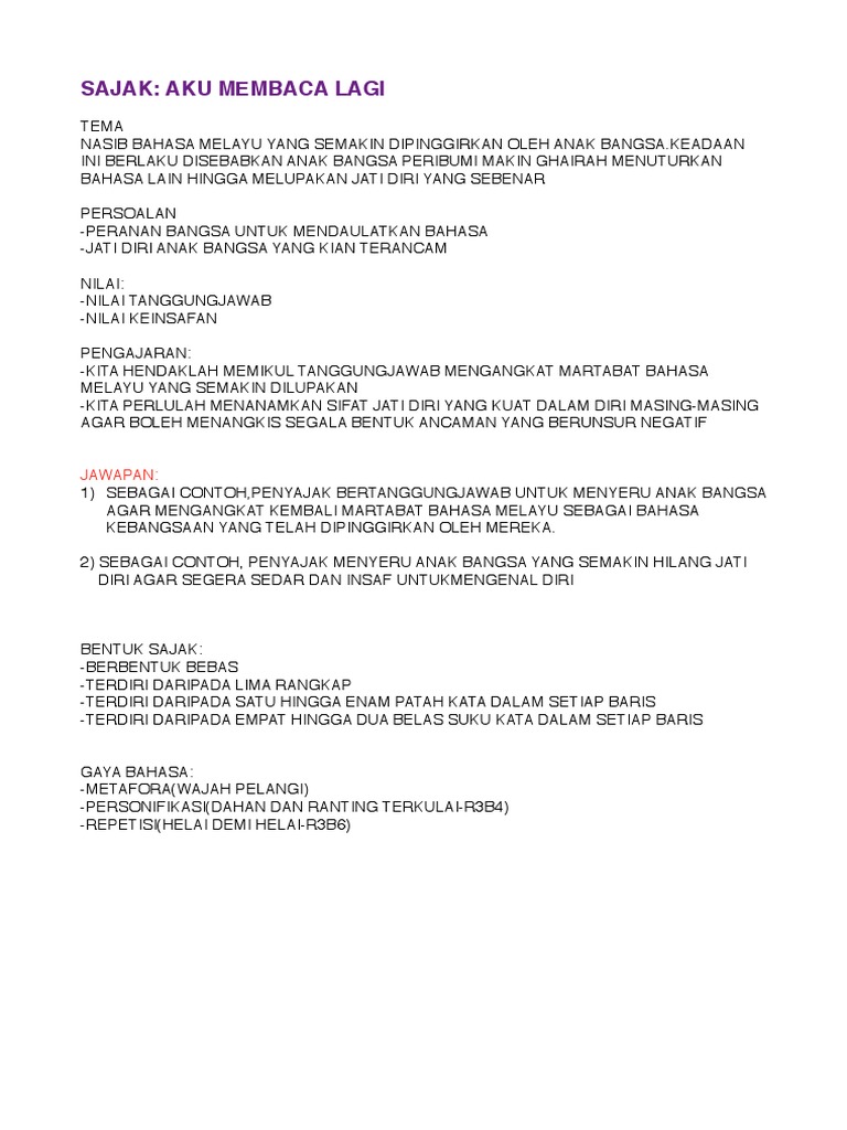 Bahasa Melayu Bahasa Malaysia Pmr Spm Komsas Tingkatan 4 Sajak Aku Membaca Lagi