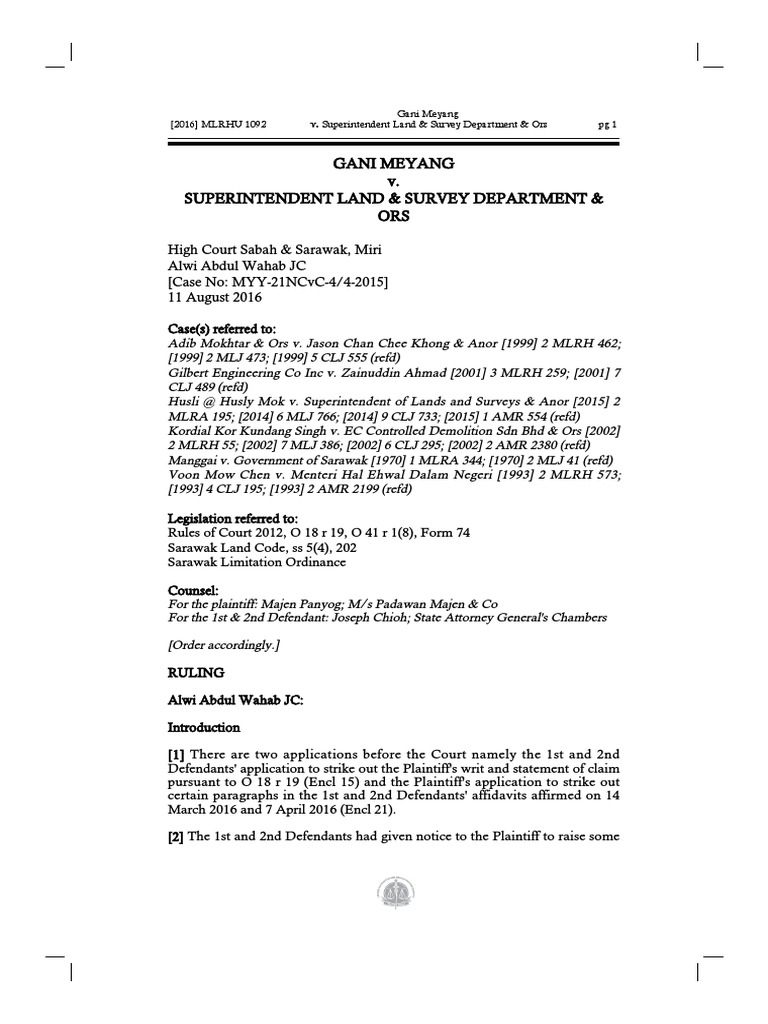 Gani Meyang V Superintendent Land Survey Department Ors Misrepresentation Pleading